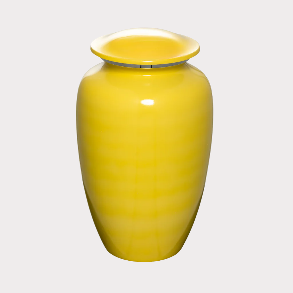 Capture the memory of your loved one in a dignified and graceful manner with the Classic Yellow Cremation Urn. Its elegant pastel yellow finish makes it a sophisticated choice for honouring the life of your beloved. This urn can be customised to include text and a photo of your choice. Please note that this will add 3-5 business days to complete.
