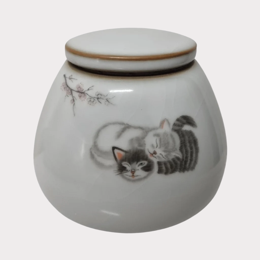 Losing a beloved feline can be difficult, which is why the Cuddling Cats Keepsake Urn is the perfect way to honour and remember your furry friend. With its high quality ceramic construction and fractal glass finish, it provides a special resting place for your kitty's ashes. Plus, the adorable design of two cuddling kitties adds a touch of cuteness to the urn. Crafted with care, this keepsake is a wonderful way to cherish your memories together.