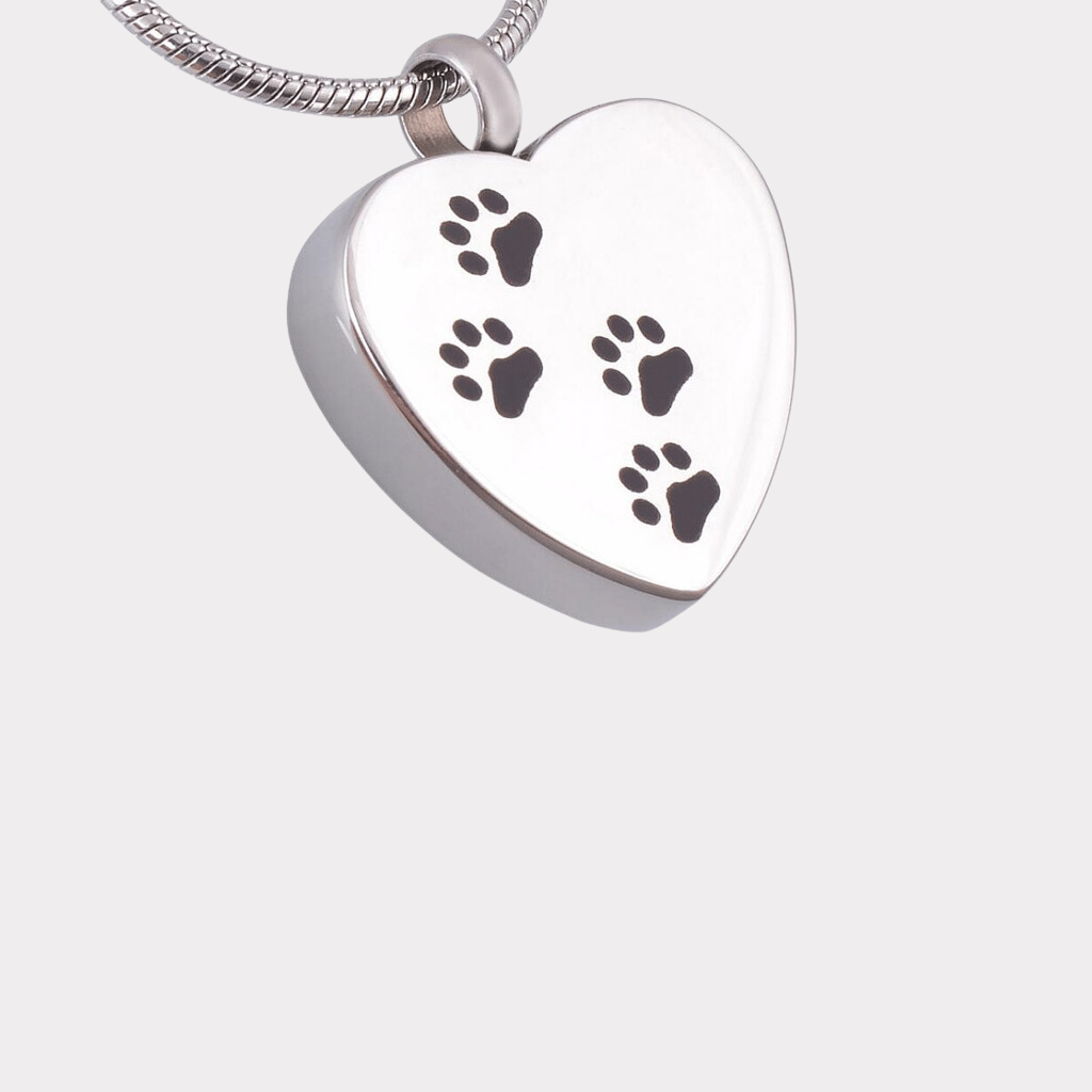 Honour the bond between you and your furry friend with the Heart Paws Cremation Pendant, adorned with dainty paw prints. With the included chain, you can create a loving and heartwarming tribute to your beloved pet.