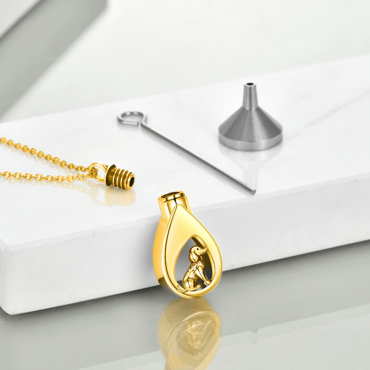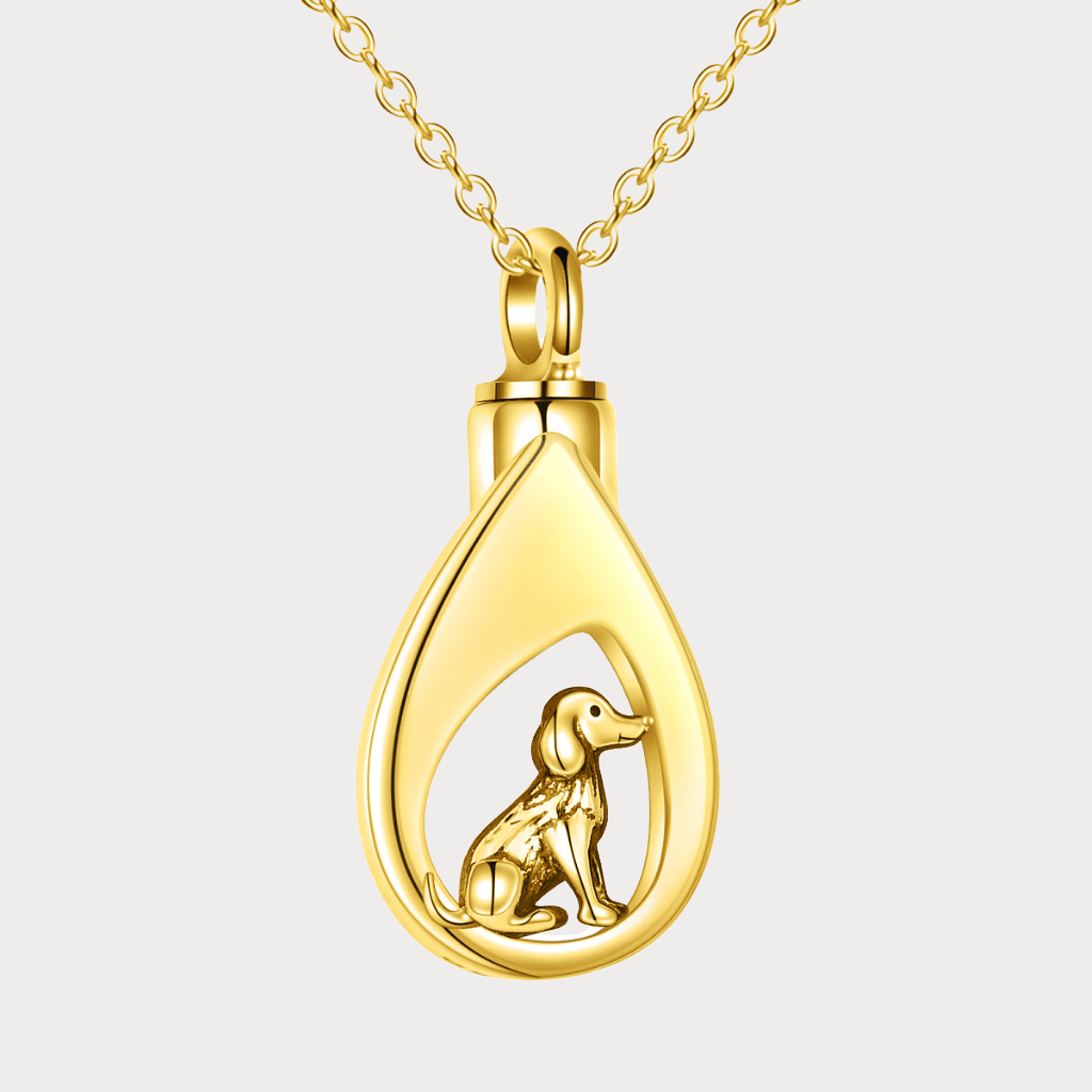 Honour the cherished bond you shared with your beloved canine companion with the elegant Puppy Love Gold Vermeil Cremation Pendant. This sentimental piece of jewellery is delicately crafted from sterling silver and finished with a radiant 2.5-micron gold vermeil plating, exuding warmth and sophistication. The teardrop design symbolises love and remembrance, while the central figure of a playful puppy serves as a heartfelt tribute to your loyal friend. The pendant features a discreet compartment, allowing you to keep a small amount of your pet's ashes close to your heart forever.