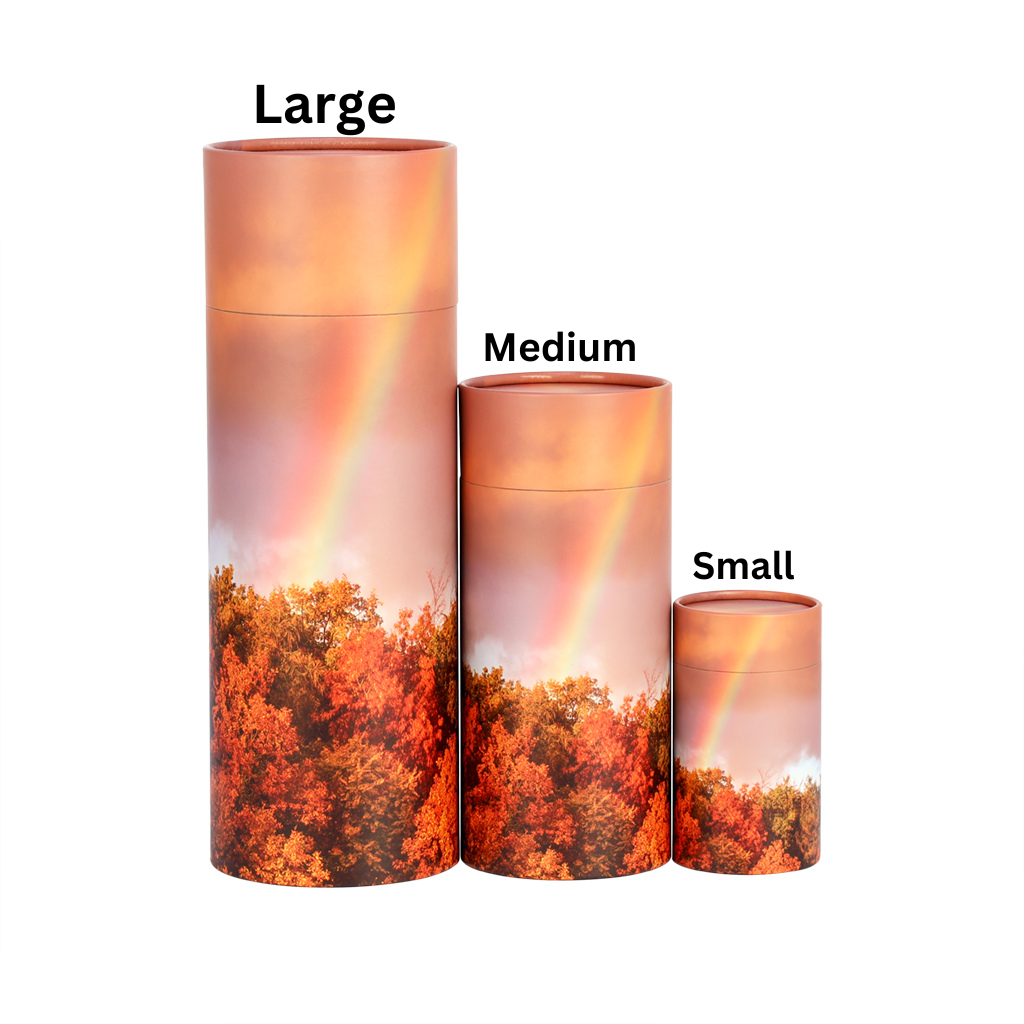 Give your loved one a scattering ceremony with a beautiful and calming ambiance with our Rainfall Scattering Tube. Featuring a beautiful rainbow and nature motifs, this scattering tube come in three sizes suitable for anyone.