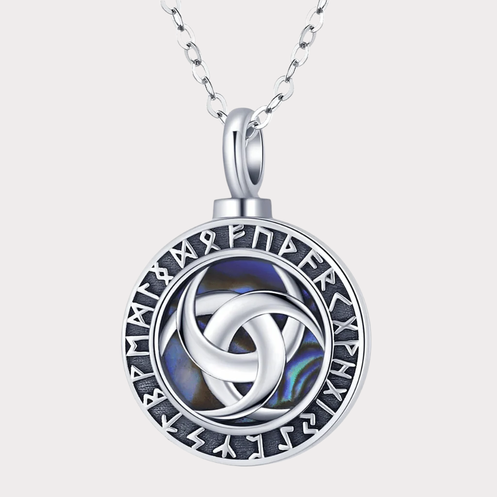 Expertly crafted and thoughtfully designed, the Runic Cremation Necklace carries a heartfelt significance for both you and your cherished one. Three interconnected moons grace this pendant, representing the endless cycle of life and death. Made from premium silver, this necklace pays tribute to Viking traditions and serves as a comforting reminder of your loved one. Perfect for holding their ashes, it is a treasured keepsake to honour and remember them.