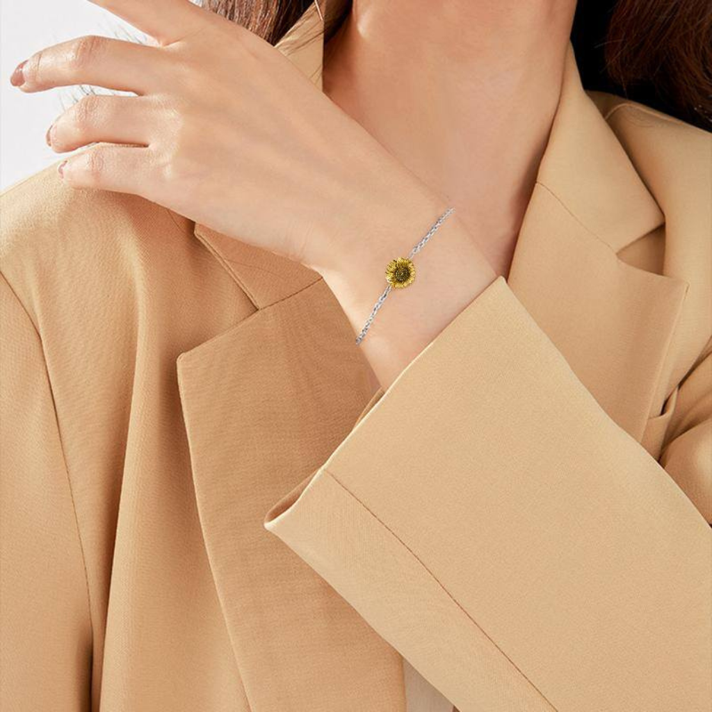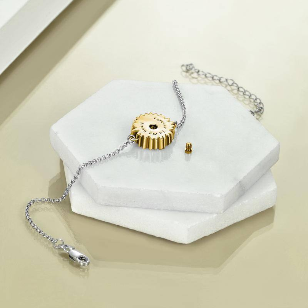Keep your loved one close to you with the lovely Sunflower Serenity Cremation Bracelet. This Sterling silver bracelet allows you to carry your loved one with you wherever you go. This bracelet is adjustable and fits most wrist sizes perfectly.
